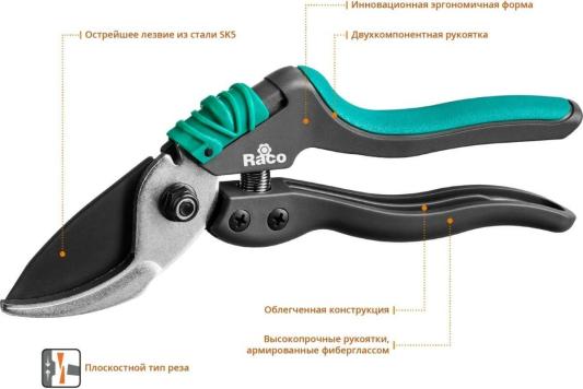 Секатор RACO S162 4206-53/S162 плоскостной 205мм эргоном.2хкомпонент. рукоят.армир.фиберглас