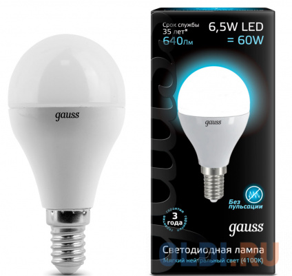 Лампа светодиодная шар Gauss 105101207 E14 6.5W 4100K