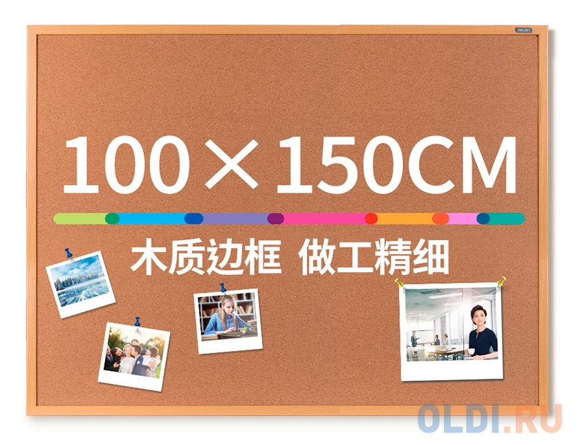 Доска пробковая Deli 50435 пробка желтый 100x150см деревянная рама