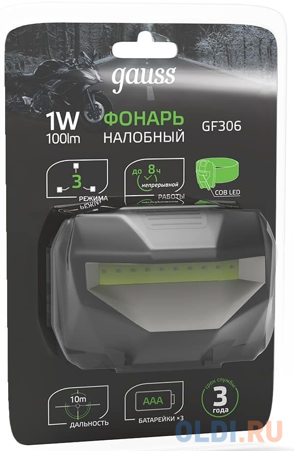 Фонарь налобный Gauss GFL306 черный 1Вт лам.:светодиод. AAAx3 (GF306)![]()
