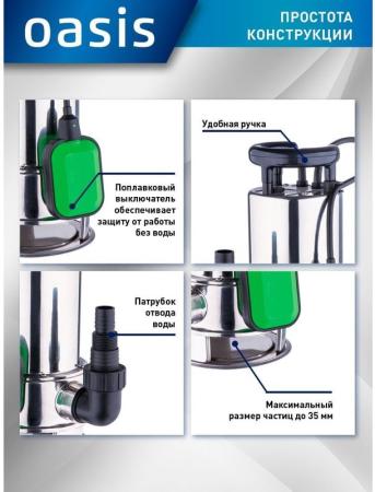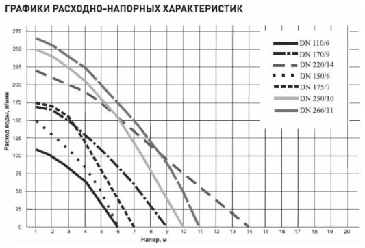Допустимый диаметр твердых частиц - 35 мм (количество примесей недолжно превышать 10% от объема перекачиваемой воды).