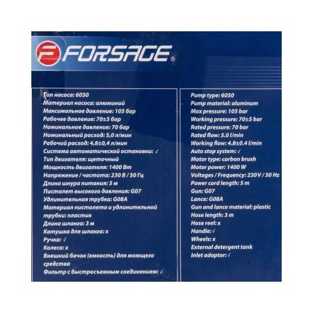 Forsage Мойка высокого давления электрическая (230-240в, 1400вт, номин.расход 5л/мин.) F-HY49E(56476)