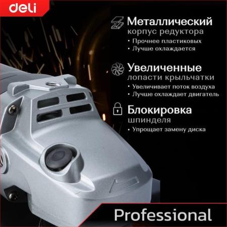 DELI Профессиональная угловая шлифмашина (болгарка) DE-JM230-1E (2200Вт, диск 230мм, 6400 об/мин, Ultra Motor) 142597