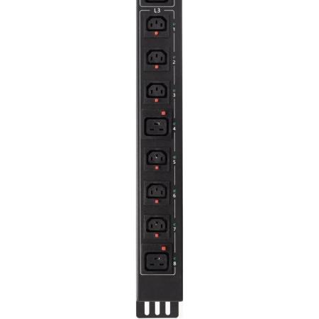 Блок распределения питания POWERCOM PDU-32AVMS24-18C3-6C9-3P, вертикал.размещ., C13Х18, C19Х6, Тип вход. тока 3x32A, 2м