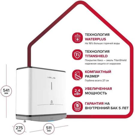 Водонагреватель Ariston Velis Style R 30, накопительный, 2.4кВт, 30л, белый [3700722]